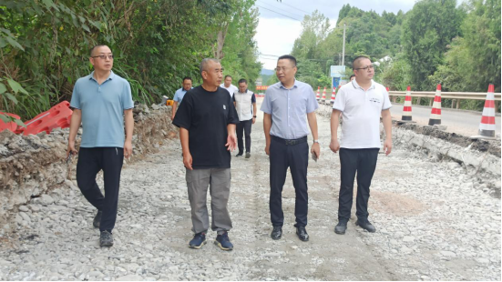 交發(fā)集團建設管理部部長蔣斌,交發(fā)項管董事長馬斌,總經(jīng)理張新雨,副總經(jīng)理王謙,綿陽路橋副總經(jīng)理蘭小松,高開司S306綿鹽段養(yǎng)護工程項目部經(jīng)理張明勤參加調(diào)研活動。(高開司辦公室)