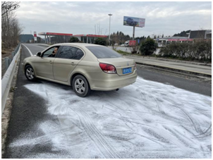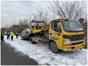 演練模擬成萬方向K110+500處因冰雪天氣影響,路面出現(xiàn)積雪結(jié)冰,導(dǎo)致車輛行駛中打滑側(cè)溜迫停,造成交通路塞。參演單位按照演練方案快速集結(jié),迅速組織人員裝備,趕赴事發(fā)地點,有序?qū)嵤┙煌ü苤疲O(shè)置交安設(shè)施,實施緊急救援,清理路面障礙,疏散滯留車輛,消除安全隱患,恢復(fù)車輛通行。