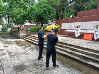 黨支部書記、所長張益科和黨支部副書記、副所長顧體科兩同志代表繞城所黨支部、團支部向烈士紀念碑敬獻花籃,緬懷革命先烈。