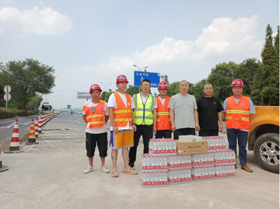 在武家坡施工現(xiàn)場,岳永林一行對施工人員進(jìn)行了送清涼慰問。(辦公室)