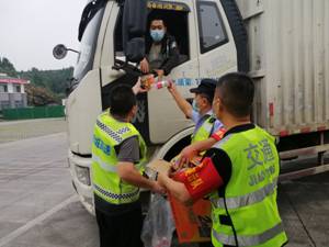 在綿陽南服務(wù)區(qū),黨員志愿者積極為駕乘人員提供食品、飲水,耐心宣傳疫情防控知識(shí),溫馨提醒駕乘人員做好佩戴口罩,亮碼掃碼,測(cè)量體溫,保持一米線等防護(hù)措施。