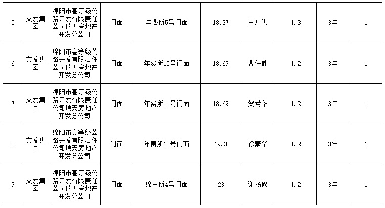 綿陽(yáng)市高等級(jí)公路開發(fā)有限責(zé)任公司瑞天房地產(chǎn)分公司資產(chǎn)出租結(jié)果公示